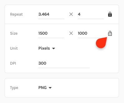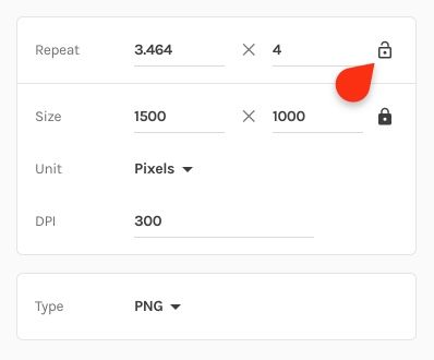 Note that unlocking the aspect ratio of repeat will automatically lock the aspect ratio for size! Whereas first the repeat count would automatically adjust to size changes, now the size will adjust to changes in repeat: