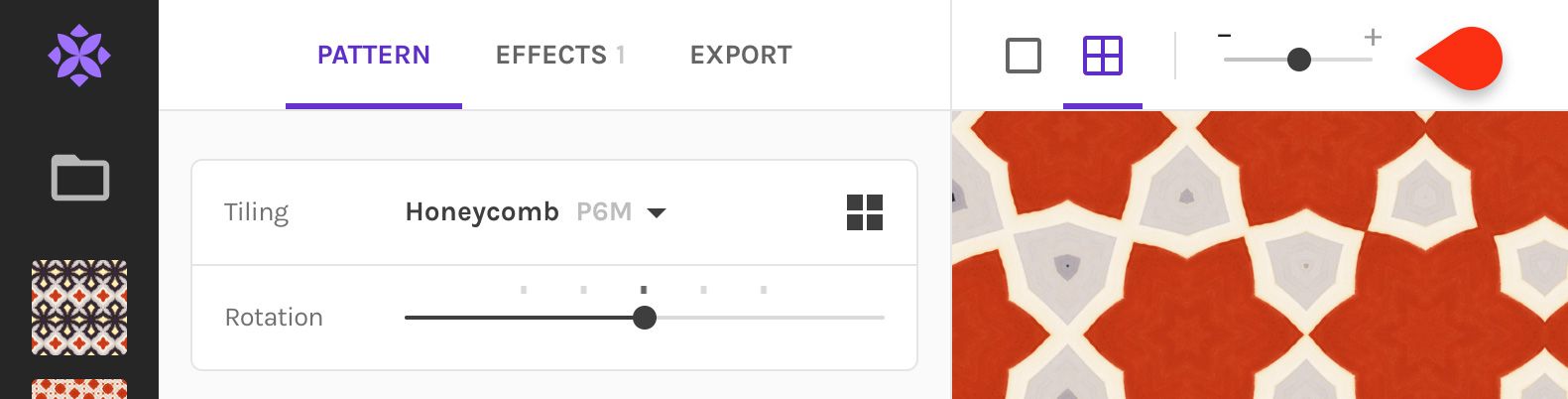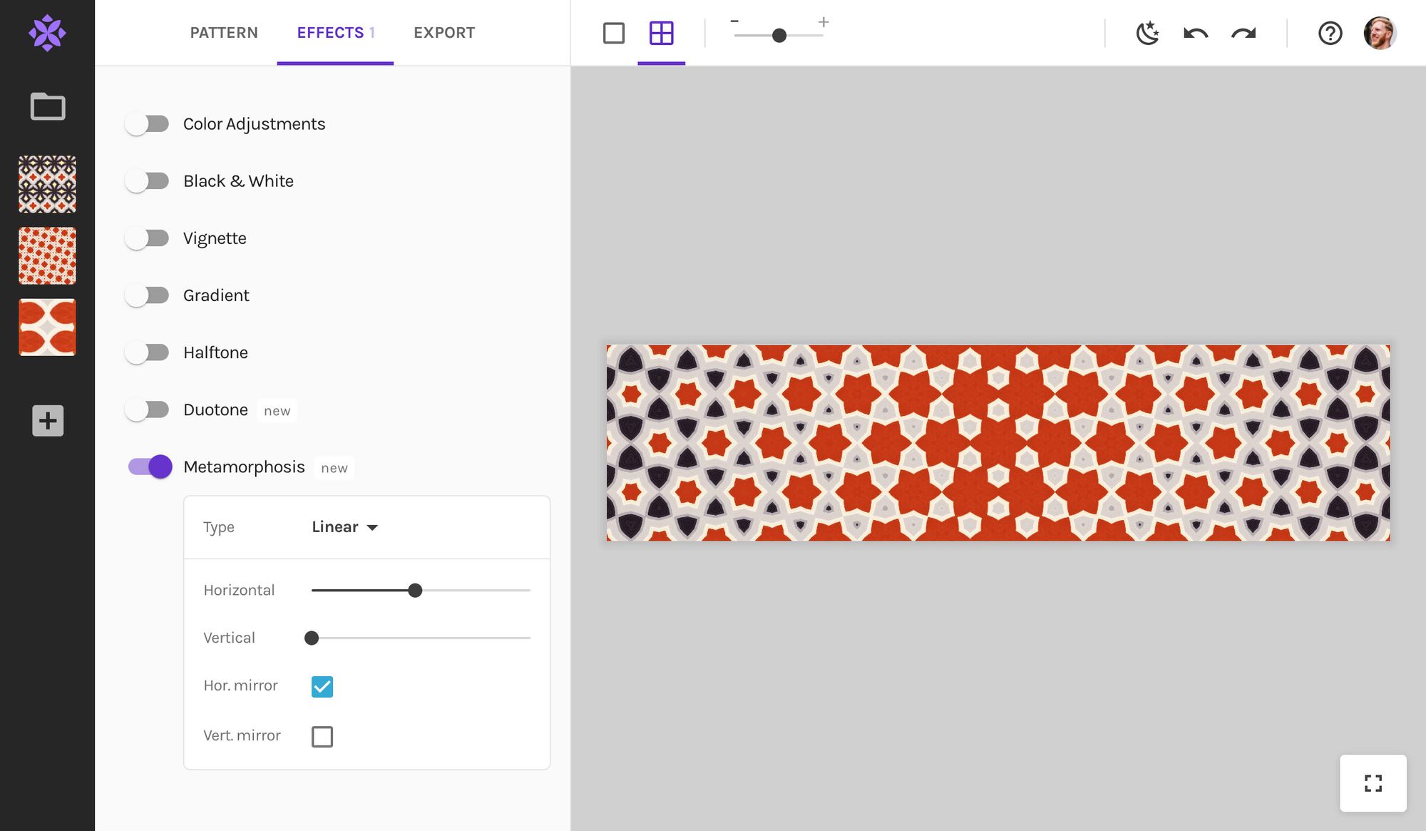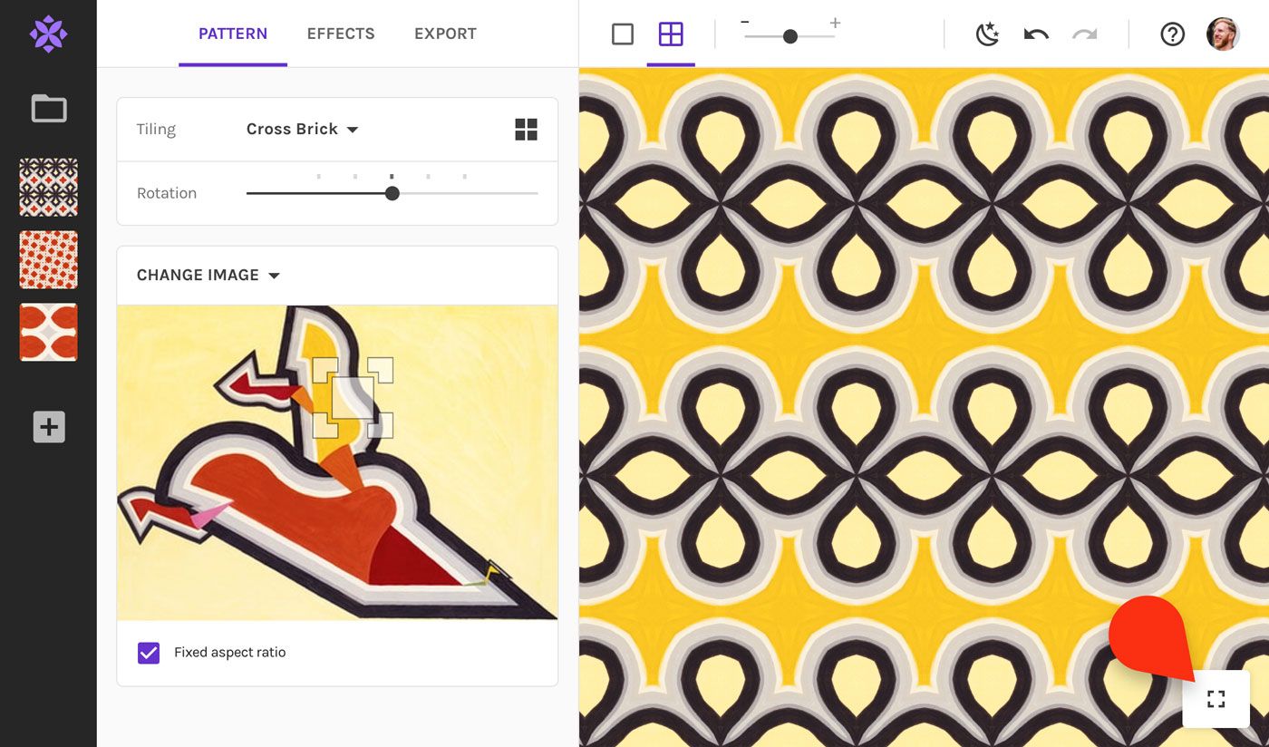 - Middle column: Everything to edit and export your pattern